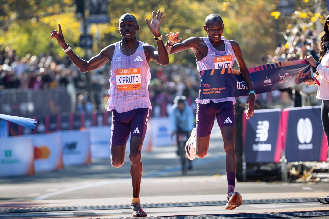 The thousands of people lining the streets of the five boroughs on Sunday to cheer on the 55,000 runners in the New York City Marathon had competitions worth seeing. Hellen Obiri of Kenya convincingly won the women's title for the second time, beating the course record by more than two minutes with her time of 2 hours,19 minutes, 51 seconds. On the men's side, Benson Kipruto of Kenya nearly cost himself the victory at the finish line, the New York Times reports. Over the last 50 minutes, Alexander Mutiso Munyao was gaining on Kipruto, who was caught by surprise at a last-minute surge. Kipruto raised his arms in celebration just before reaching the finish, and his final margin was less than two-tenths of a second. So both clocked in at 2:08.09. Marathon scenes included: