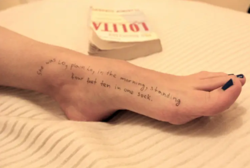 They include images of lines from Lolita written on a person's body